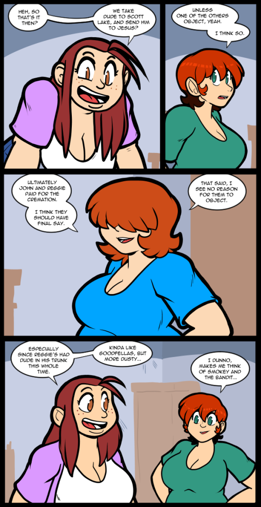 Additionally, I genuinely wonder if people remember either of the movies mentioned. In recent years it very much feels like there is no longer a cohesive pop culture, so it’s possible that no one reading has seen either film. I suspect that at least a few of the older commenters have, but I don’t know it for sure. In fact, I have never seen Goodfellas all the way through. I’m simply aware of the important scenes via cultural osmosis. It seems like a decent film, but I’ve seen several documentaries about the people it is based on so I generally get the concept. In any case I’m wrapping up these little plots more or less so I can wrap up the date and move on from there. Which is not to say I won’t pop in on other characters to break monotony, but the actual problems are resolved as far as they can be at this point.