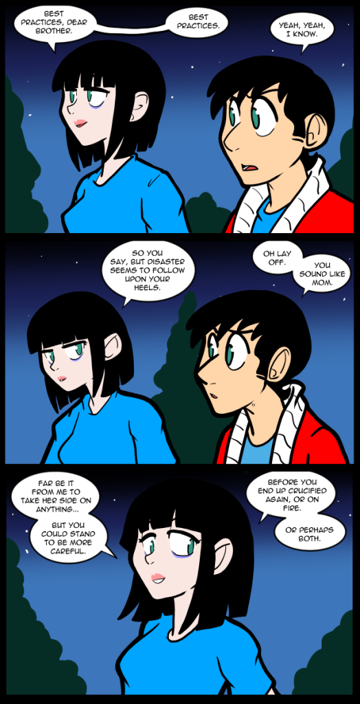 I was feeling ill about halfway through this page so I had to lay down. Honestly, it wasn’t a late as it could have been. Whatever was wrong with me passed relatively quickly. Although I think I may just lay down some more now.