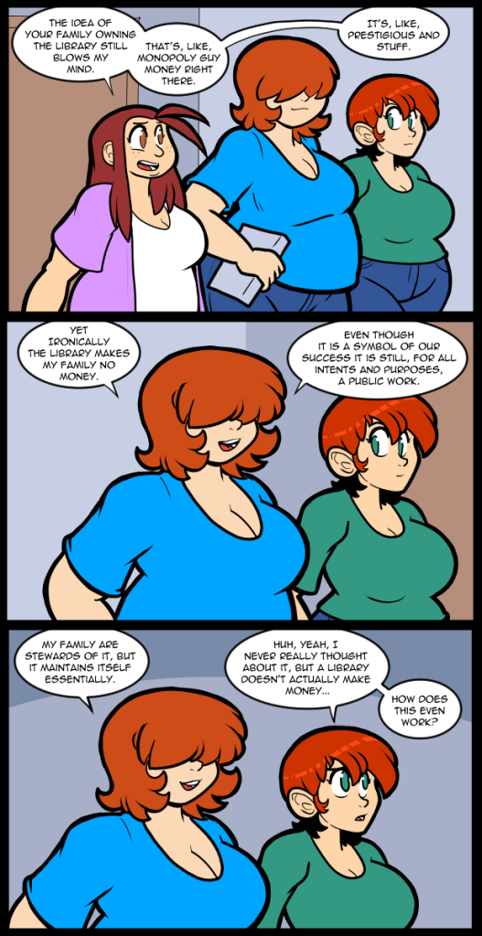 That’s right, it’s more library lore! It’s funny that Reggie and Alex are both characters who were really meant to have their own comics when they were originally created. In a world where it wasn’t just me making everything maybe they would have been spinoff books, but that is not the world we find ourselves in. Most of the little groups have enough story behind them to carry their own stories. I could probably make an entire series out of God Be With Brew if I wanted to. Since my writing obsession often focuses on the granular things of everyday life it’s easy to find things that I want to explore. Even the three shoplifters from early in the comic have enough passive backstory to make an entire story out of. I like having the motivations for every character available in my mind all the time because it makes it easier to move from thing to thing if you already know that stuff.
