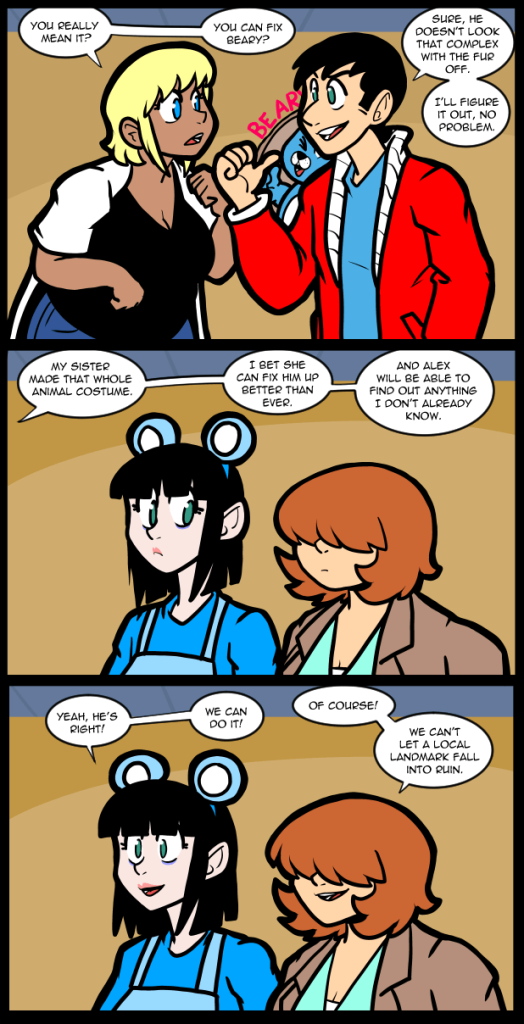 Reggie probably should know better than to rope in other people into his declarations, but he’s maybe a little swept up in his own momentum. It’s safe to assume that he feels a little guilty about having to let Maddison down and now he’s on the road of overcompensation. It’s also possible that he understands that the animatronics are still part of the draw of the establishment and that if it fails his sister will be out of a job. They tease each other, but she is still his sister and blood is important to the Boothes. So he’s got yet another thing to figure out. At the end of it all it will probably be good for all of them.