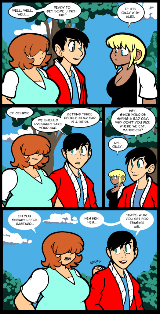 I think if Maddison were any other character they wouldn’t’ve wanted to have an awkward lunch with Alex and Reggie, but I feel like she would because there is a loneliness in her that she doesn’t really understand and she doesn’t know how to deal with things without having other people guide her. Which makes having an argument with Alex a particular problem since Alex is her de facto pack leader. She’s also her emotional pillar, safe space, however you want to say it. I’m sure most people have situations like this with their equivalent person.