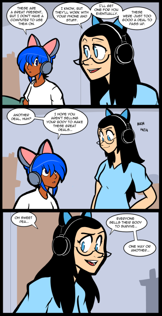 Anyway, I’ve learned to mention my monetization methods in every post by learning the wisdom of other social media influencers. Which is why I’m reminding anyone who reads this that they can support my work via the links above. Or on the sides if you’re on an actual computer. That’s something else I learned from others. People like using phones to read webcomics now. So a friend fixed the site so it can do that. Age, wisdom, I’ve got it all… Ladies.