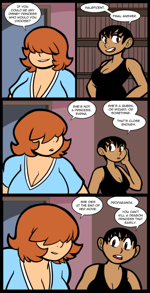 This has never come up in the comic, but the mouse fursona that Evrina is sometimes depicted as is not the one she came up with for herself. Alex, Evrina, Maddison, & Bridgette all have fursonas that Alex came up with for her own use in making her little self insert stories. Evrina actually has one that is more like how real fursonas work in that it doesn’t really have anything in common with her real self apart from the fact that it’s an even more unrestrained version of her internal self. This is kind of obliquely referencing that in that she likes monstrous, unrestrained, people and things. Ironically Alex and Evrina’s fursonas have more in common than they realize but they’ve always hidden aspects of them from each other. Anyway, someday I might actually get to tell these deep lore stories in the proper continuity. That remains to be seen.