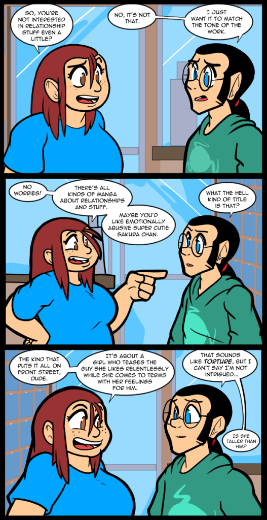 I’d really like to get back to the actual story I want to tell instead of this random stuff, but the energy jut isn’t there with the sickness & half assedly making sure grandpa doesn’t die. I don’t understand how he can tolerate existing in the state he’s in. Maybe it’s just that he’s impaired so much it doesn’t register, but if it were me I’d be flinging myself down every flight of stairs I came across. I’ve just got a tough cold and I’ve been looking longingly at the basement stairs when I go to get cans of soup.