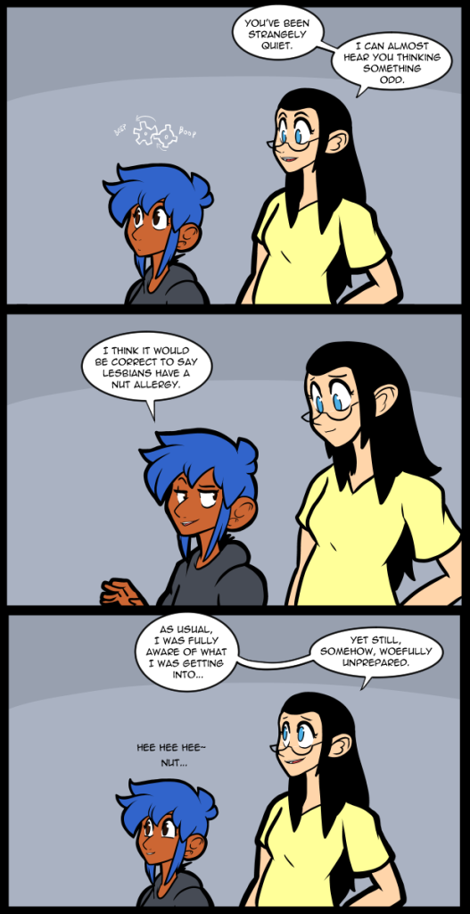 I guess having so many sicknesses in rapid fire just wore me down. Or maybe it’s just my age & general health. I’m not getting over any of this in a timely manner. I’m not even sure how many days of this cold have passed. My gums even hurt at this point. Of course the true problem with being sick is the decline of my mental faculties. I know that the way I type doesn’t properly convey how damaged my thinking is right now. My ability to fake being fine really doesn’t do me any favors. At the moment I can barely remember where I was going with the actual plot of the comic. Additionally I can barely think of anything amusing to write about in these filler pages.