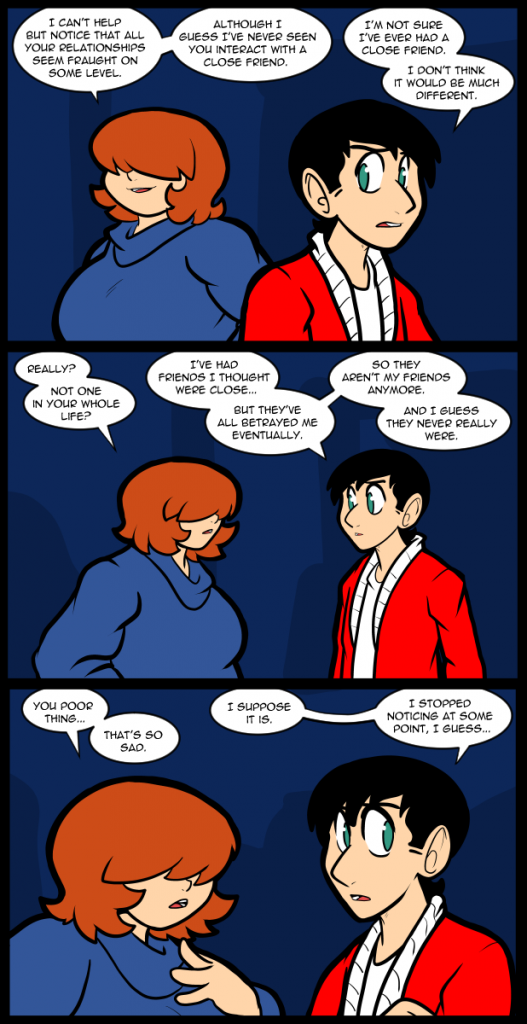 My feet have been bothering me a lot lately. I’m not supposed to eat stuff with a lot of salt in it but holiday food is loaded with it & that’s all there is for a couple of weeks & my pills can’t quite keep up. You might not think that my feet would have any effect on drawing a comic, but it makes it incredibly hard to maintain any focus when my feet feel odd. It’s actually easier to have a headache and work than it is when my bad foot is swollen. The trend will ebb away from ham and meats soon & I’ll go back to not having to deal with it soon though. I found new chips that have a lot less salt in them so I can actually enjoy them more. They taste like corn instead of salt which is what most foods taste like to me since I avoid it so much. Your body gets used to things over time so I can’t stand salted peanuts now. They taste like trying to eat a handful of salt. It’s so crazy how much we pour sugar and salt into everything. You can barely taste anything. I wonder if it’s like that everywhere or if it’s an American thing… I’m not sure, but I do know that I’m not salty about people supporting me on patreon and subscribestar. Hopefully I’ll actually have some extra content soon. I hesitate to say why for fear of the universe impeding me again…