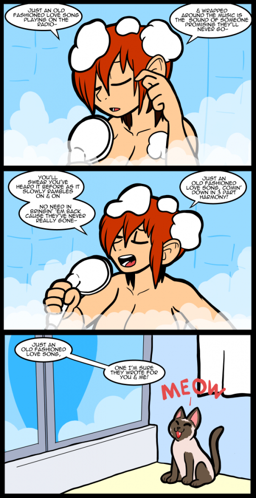Alright back to just me talking. I find it amusing that this post is under Carol singing in the shower. I framed it so there’s nothing to see, but posted the full sketches to patreon because you have to draw more than you need to get a pose and it seemed like such a waste. Nudity in the main comic is out since there’s no age filter. Even though there’s swearing since Americans hate nudity so much I can get away with cursing but not random boobs.