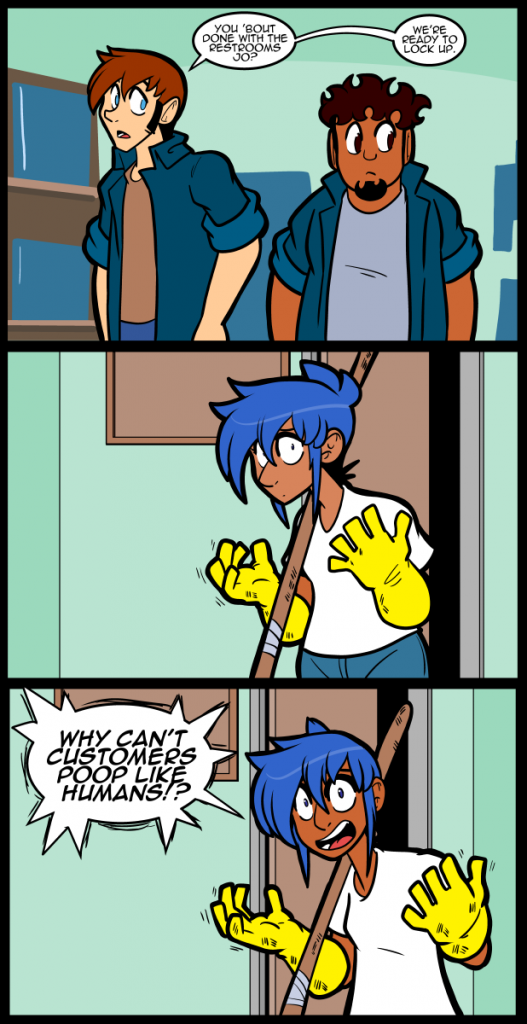 Of course I had to clean shit up from random places inside the store itself on more than one occasion, so it’s not like poop problems are limited to just restrooms…