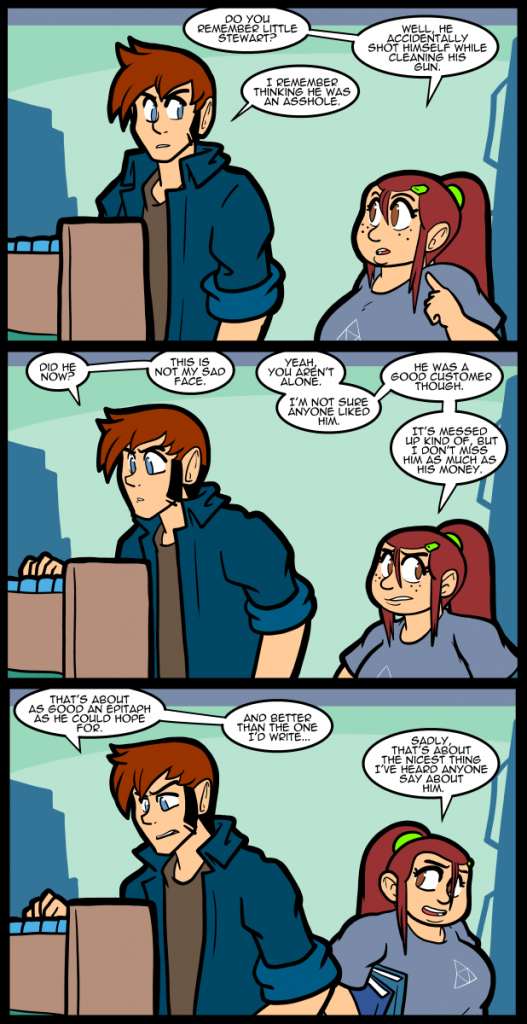 This is based on a real thing. They always said the guy shot himself accidentally, but its possible that he did it on purpose. It was apparently hard to tell for sure. In either case he was a dick. Went through six years of school with him and he was always a dick and there was no reason anyone could see except that’s just who he was. In retrospect he was not having the Asperger’s. He did not act like a dick in that way. It’s sometimes hard to make that kind of a call, but in his case it was not that way because he was fully aware of what a dick he was being and loving it. This is after years now of being around people who identify themselves as having Asperger’s. Their dickish behavior has this feeling of “I did what now?” instead of “Ha ha! Fuck you! Fuck you! You’re cool! I’m out!” That’s basically my shorthand for deciding if who I’m dealing with is “on the spectrum” as they say. Of course a lot of the time they tell you in the very first interaction if they have trouble identifying social cues, because the world is different now. This is much easier.