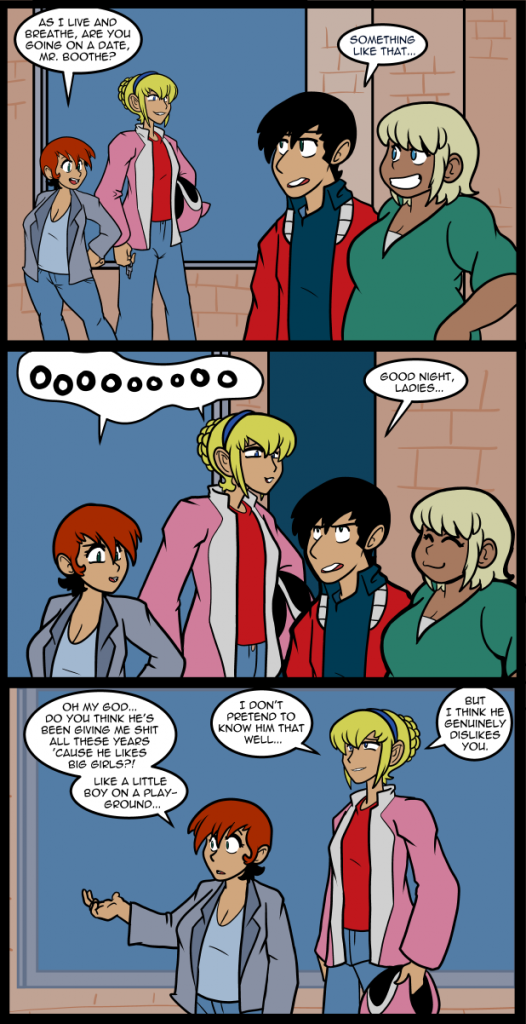 I did most of this page standing in the kitchen making dinner, because fuck me. But here it is. I did it anyway. Name me another artist with this kind of dedication. I may not be the best but I try so much harder. Don’t discount gumption, kids. It can carry you a long way.