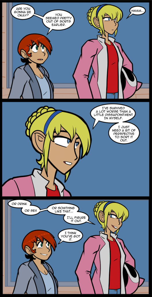As bitter as that sounds I would probably be dead now if I drank in my youth. My body would not have survived the bullshit I’ve put it through if I had thrown my predisposition for excess in with alcohol. Fewer people would have characterized me as a manchild, but I’d be dead, so… On balance I’ve won in some way, I think. And so have you in that I’ve created this comic you enjoy. Everyone’s a winner, moderately.