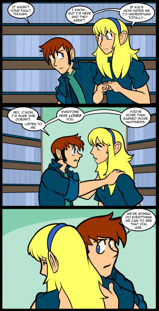 English is a very particular language that likes to be precise. In most areas you can cut and recut words into more and more definitive ways to say something until you say exactly what you mean. Even so the language still manages to fall short sometimes. The word love is one of those words that somehow tends to lack clarity when English speakers use it. When you tell someone you love them they have to rely on context. The Greeks were a little better about being clear with what they meant when invoking love. Philia is a strong, what we call brotherly, bond. A deep, meaningful, friendship. The opposite of that was phobia; an abiding disdain for someone. We use the words in conjunction with other things now, but rarely by themselves in reference to a person. Thomas and Nina share a deep philial love for one another. A strong friendship forged in the fires of hardship. I think that even though they might not know it themselves they are best friends. Or maybe they know it, but haven’t put it in those words to themselves or each other. Thomas is his most real with Nina. The pretense of what he tries to be, even with Carol, drops away for her. That’s not to say that he cares less for his other friends, but he’s safest with her. Nina, on the other hand, is much more herself all the time, but feels safe sharing her pain with him. He doesn’t treat her pain like a burden, or embarrassment, the way other people might. I love writing them together.