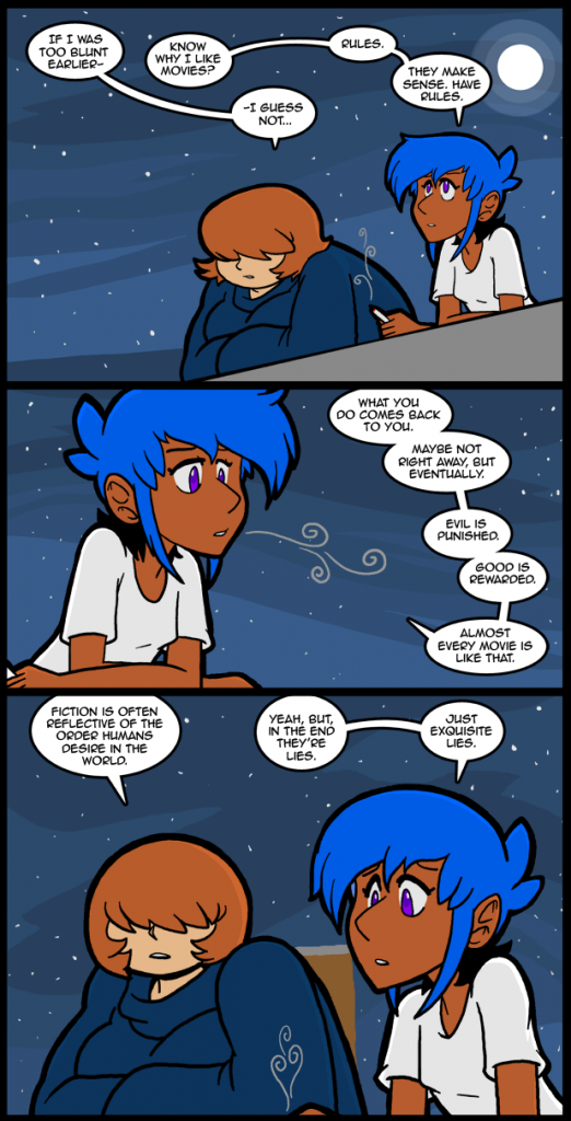 My crisis is still photoshop based. I’ve done every concieveable thing to make that damn thing work, but it has to be some kind of random windows update that ruins the program’s ability to sense pressure. As I said before I can make CS1 work okay, but it’s just not as stable, and sometimes I forget to save, or it crashes while saving. Manga Studio is like trying to draw with someone else’s hands. Nothing feels right. Coloring is also a massive hassle because I can’t see the colors well enough to tell when I’m using the wrong ones. I’m going to have to make a little color guide and try to import it to MS if I have to go that route. On the up side the paint bucket seems to work better in MS compared to PS. You can color an ink layer and it doesn’t look all weird if you just leave it on. It’s slower though. I really liked my little coloring filter in PS. I dunno. I’ll figure something out anyway. If nothing else I’m going to try ang complete this section with PS1 so that they at least look the same. After that I’ll play it by ear.