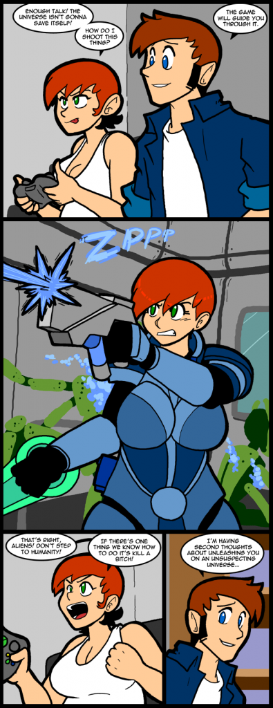 It’s been established that Carol is not truly anti gaming. She has her comfort zone, but hasn’t drunk the Kool-Aide so to speak. She’s not invested in the idea that a game world can be as engaging as one in a book, for example, or a TV show. It’s something I’ve seen countless time in my life. Much like the way nerds don’t understand why people like sport, people like Carol haven’t fully grasped the emotional investment nerd make in games. Ultimately they are the same. Sport fills the same emotional needs that games, or books, or whatever, do in others. It’s no different than one person liking savory tastes and another preferring sweets. Over time tastes can change, or be expanded upon. As a child I hated onions, but now I will eat one essentially raw if it’s in the right dish. I’ve never cared for sport, but I try to be understanding now. When someone else posts about how happy they are about their team winning it’s equivalent to me saying how much I like Skyward Sword, and likely as potentially irritating. XD