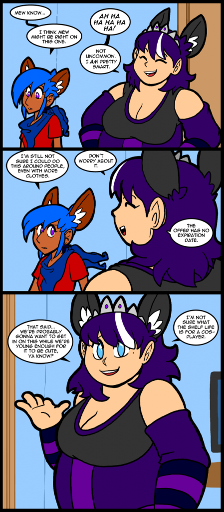 It might interest you to know that the Teen made me adjust the colors of Alex’s costume. She was pestering me while I was working and demanded that I change it till it suited her. On my drawscreen it looked fine, but when I looked at it on the regular one there was a distinct blue tint to some of the purple. It really irritated her, so I sat there and changed it till she said it was okay. She has very clear ideas about what she likes as far as fashion is concerned. Our only major disagreement is animal prints. I detest them. They are so rarely done well. She loves them, and I give her crap about it quite a bit. There’s actually very little of it in her current wardrobe, but what little there is I dislike. Cheetah spots are the worst and zebra stripes are about as good as animal prints get, IMO. That said, if it’s part of a cohesive outfit they aren’t a problem, but you can’t just throw animal prints in with random clothes and expect them to look good.