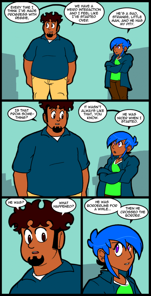 This side story about Reggie is actually something I wrote with the intention of having someone else draw it, as kind of a special treat, or maybe when I was going to a convention, or something. The problem is that none of the people I approached were interested in doing it. It also kind of fit right in here with this part of the story, so I decided to put it in. I wrote beyond my art capabilities for this thing, since I wasn’t going to have to do it myself originally, so I guess we’ll see how well that works out…