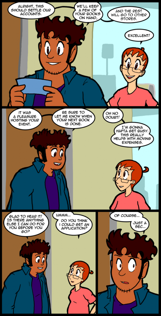 I was originally perfectly happy to let Dawn and her husband bugger off back to Texas in the original draft of this story. Now, of course, they are going to be around and Dawn doing this makes sense. There’s basically zero chance of Mike hiring her, or him, but by law you can’t refuse an application to someone. At least that’s how it was last time I checked.