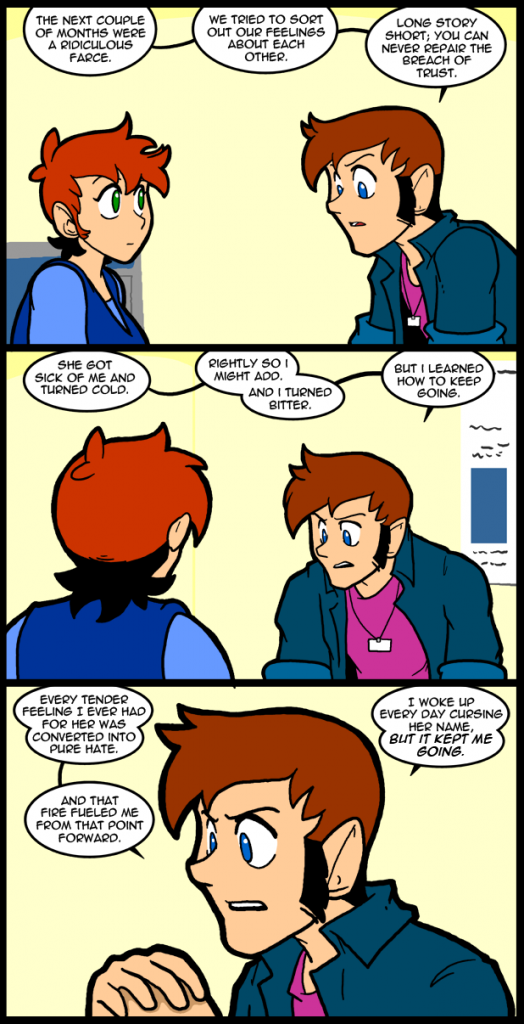 Ha ha, Thomas, you snappy jokester… Yeah. Some people are blessed with a level of intensity in their youth that is hard to cope with. Of course each person has to respond to the world with whatever gifts they are given, and boons are not distributed equally. Which is why some of you can relate to Thomas directly and others are left wondering how such a person ever convinced other people that he was smart and cool. He is, at least, aware of himself enough to understand the whys of his life. That is probably the gift that saves him ultimately. He just needs to bring the line of thought to its logical conclusion. Giving in to that can be difficult.