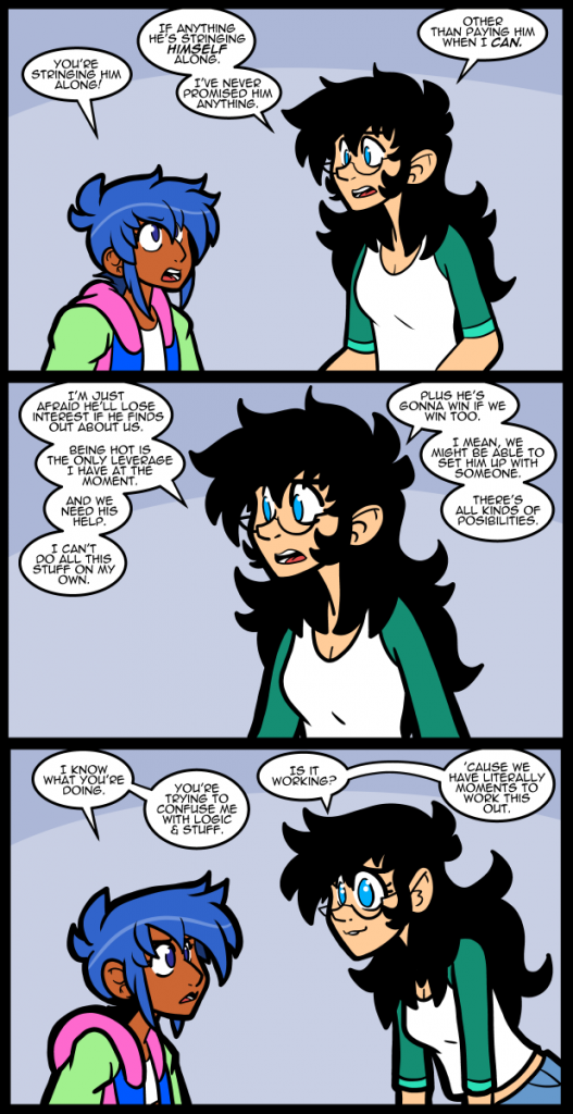 Well, she’s giving it one hell of a try, although Jo is not being averted by her points. There was a huge discussion in the discord over this, which almost never happens. I kind of wish I could just cut and paste it here because it’s an interesting look at how perspective colors your view… Continue reading 1826 Aware.
