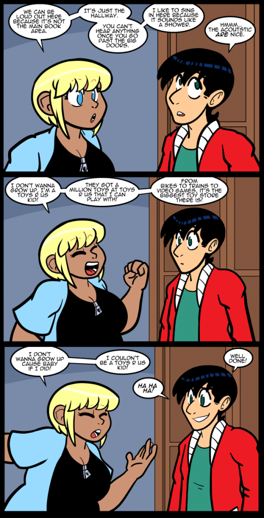 I went through a bunch of stuff before picking the Toys R Us jingle. The discord crowd suggested a bunch of stuff that I swatted down, because I’m the best at comics! The best! Toys R Us is over, and I usually don’t slap something in the comic that dates it so much, but fuck… Continue reading 1829 Pan.