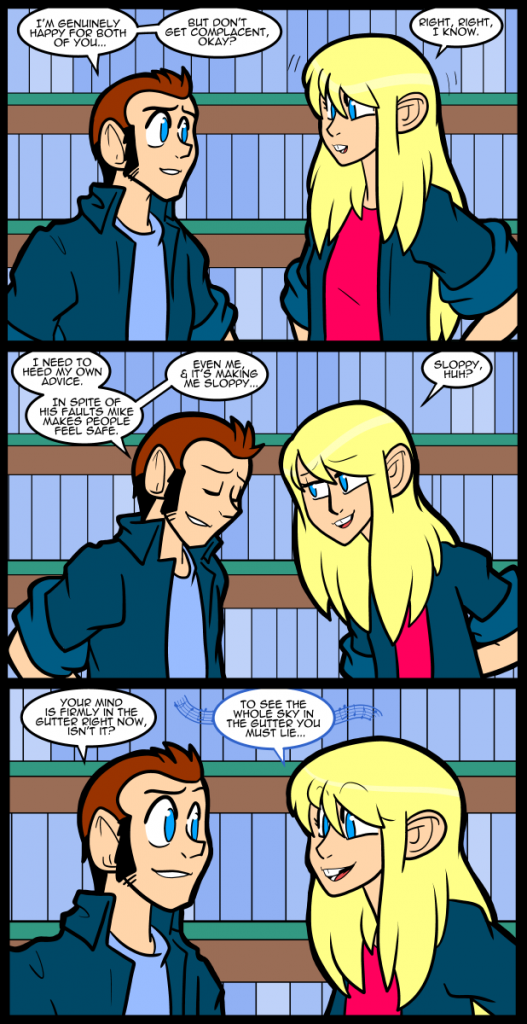 Patreon Comic Vote Reddit Wiki Discord Nina’s last line is her singing a bastardization of a line from They Might Be Giant’s Thunderbird. The title of the page comes from the same song. It might also be the longest title for a page so far… I’m pretty certain this isn’t the first time someone has… Continue reading 1912 You Can’t See Heaven When You’re Standing Tall.