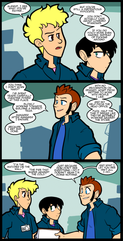 Patreon Comic Vote Reddit Wiki I rewrote this whole thing so many times. It’s really easy to slip into letting the cast argue like characters in a show as opposed to the way people actually argue. This kind of messy argument where neither party is sticking to what the issue is, or not understanding what… Continue reading 1953 Long Con.