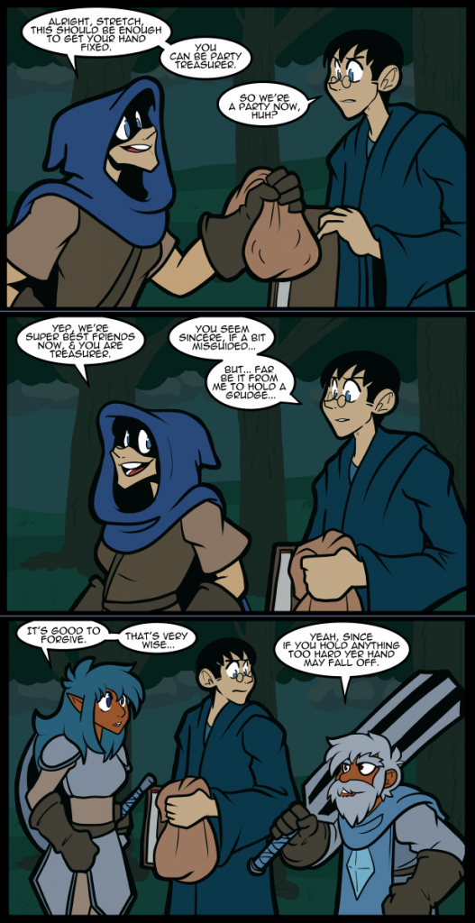 Patreon Comic Vote Reddit Wiki 13th birthday Well, the group is a group now. After a shaky start they’re learning to trust one another. Jessica’s real world knowledge of grifting will serve them well. She’s already becoming the defacto leader although they don’t realize it yet. Her charisma and willpower make her a natural leader,… Continue reading 1979 Kung Fu Grip.