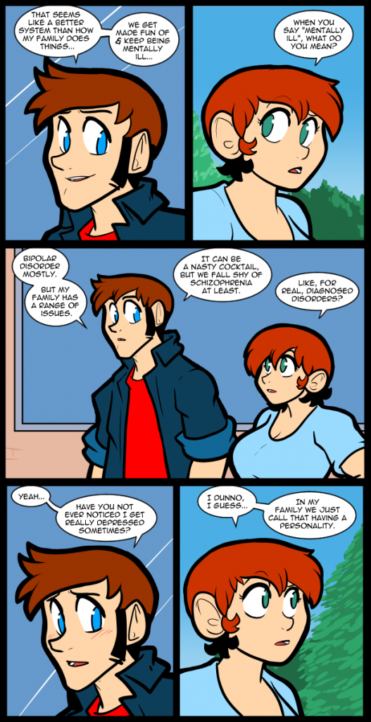 Patreon Subscribestar Comic Vote Reddit Wiki Holiday List Twitter @betweenfailures Contact me for a Discord invite. First of all, thanks to all of you who sent well wishes for the holiday. Rather than respond individually I decided to do a blanket reply. Second of all, to those of you who sent me gifts with no… Continue reading 2259 Disorderlies.