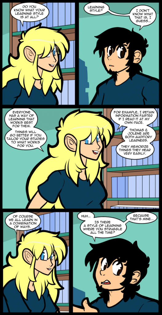 Patreon Subscribestar Comic Vote Reddit Wiki Holiday List Twitter @betweenfailures Contact me for a Discord invite. The concept of styles of learning in a scientific sense is tenuous, at best. Actual categorization & data are speculative for the most part, but there are several theories out there competing for the top spot. Nina is speaking… Continue reading 2276 Failing With Style.