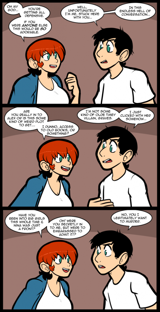 Patreon Subscribestar Comic Vote Reddit Wiki Holiday List Twitter @betweenfailures Contact me for a Discord invite. On March 20th the comic will have officially been in existence for 15 years. Even though the dates don’t match up on the site because of various disasters. I’m not going to plan anything special because whenever I do… Continue reading 2287 Nerder.