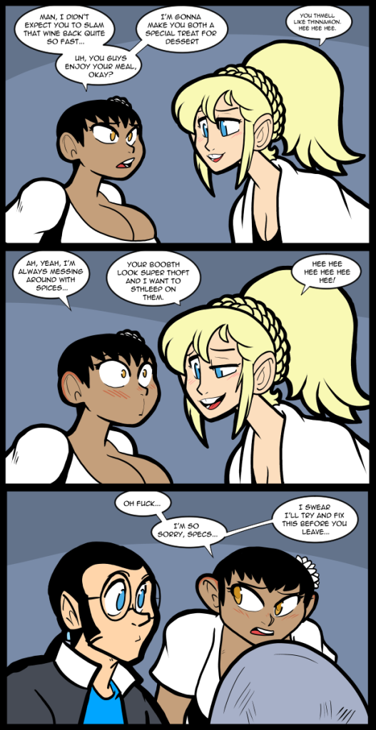 Patreon Subscribestar Comic Vote Reddit Wiki Presents List Shirts & such. Mistakes were made. Life is a gamble. My sleep schedule is still off kilter. I’ve been awake in the daytime, which is abnormal for me and I don’t like it. My body suddenly remembered how to be sleepy after, like, a few years of… Continue reading 2630 Mammalian Comfort.