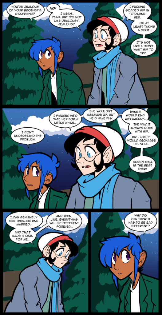 Patreon Subscribestar Comic Vote Reddit Wiki Presents List Shirts & such. Ko-Fi. Well here we are again. Feelings. Nothing more than feelings. Trying to understand these, feelings of abandonment. I streamed most of the creation of this page on Discord just to see if I could. It was taxing on my poor Surface but it… Continue reading 2648 Why Bad?