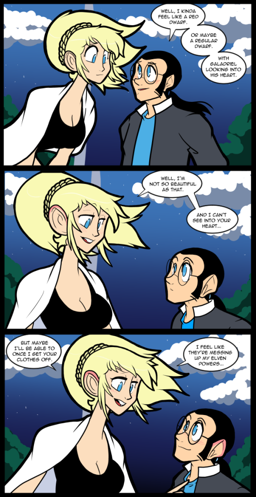 Patreon Subscribestar Comic Vote Reddit Wiki Presents List Shirts & such. Ko-Fi. You know how I said I had half the page done last time? Yeah I rewrote the whole part and couldn’t use the art I had. Also, I kept writing this interaction over and over because I just wasn’t flowing how I wanted.… Continue reading 2655 Calaquendi.