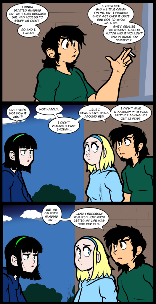 Patreon Subscribestar Comic Vote Reddit Wiki Presents List Shirts & such. Ko-Fi. Many was the time, in my 20s, when I sat in the cool air of a Kansas evening, listening to the petty complaints of coworkers and friends. I’m not exactly nostalgic for it, but at the same time I do miss knowing people… Continue reading 2973 A Missing Part.